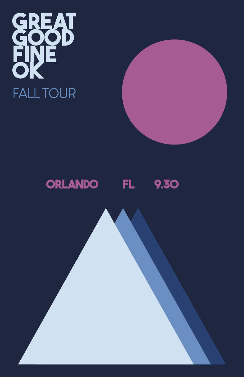 In response to a prompt at as a student at UNC Asheville to create a gig poster using Adobe Illustrator, I designed this concept for the band Great Good Fine OK. I drew inspiration from their existing aesthetic and branding, with a particular focus on the cover art from their album III.