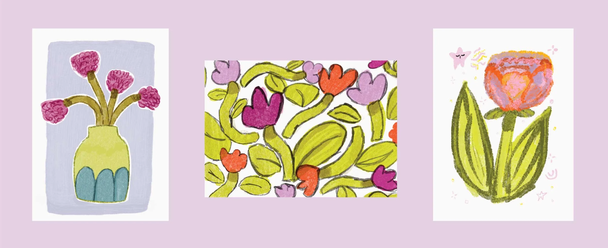Inspired by my love for the classic springtime flower, I wanted to focus on abstract and stylized themes, while maintaining a whimsical and organic feel.